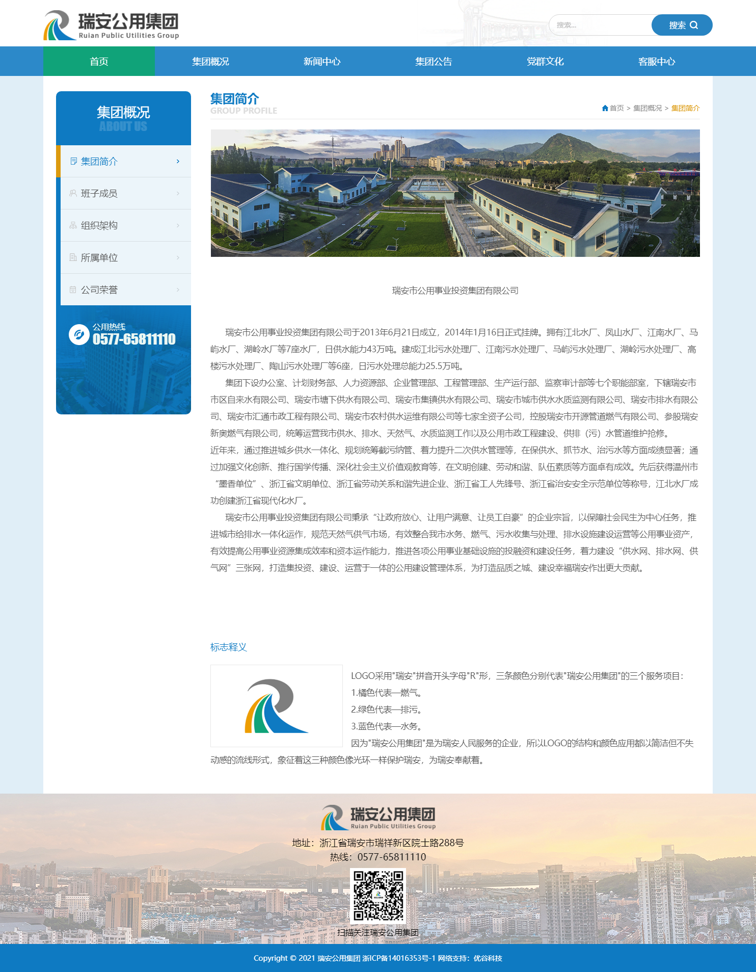 瑞安市公用事業(yè)投資集團有限公司于2013年6月21日成立,2014年1月16日正式掛牌。擁有江北水廠、鳳山水廠、江南水廠、馬嶼水廠、湖嶺水廠等7座水廠,日供水能力43萬噸。建成江北污水處理廠、江南污水處理廠、馬嶼污水處理廠、湖嶺污水處理廠、高樓污水處理廠、陶山污水處理廠等6座,日污水處理總能力25.5萬噸。